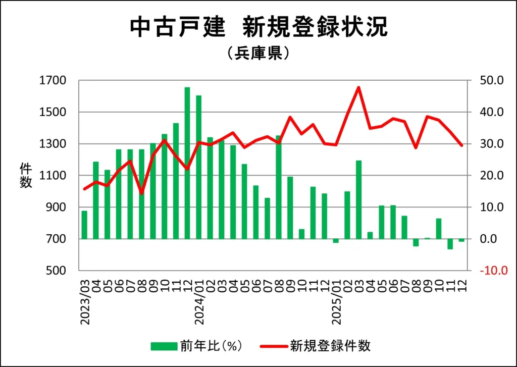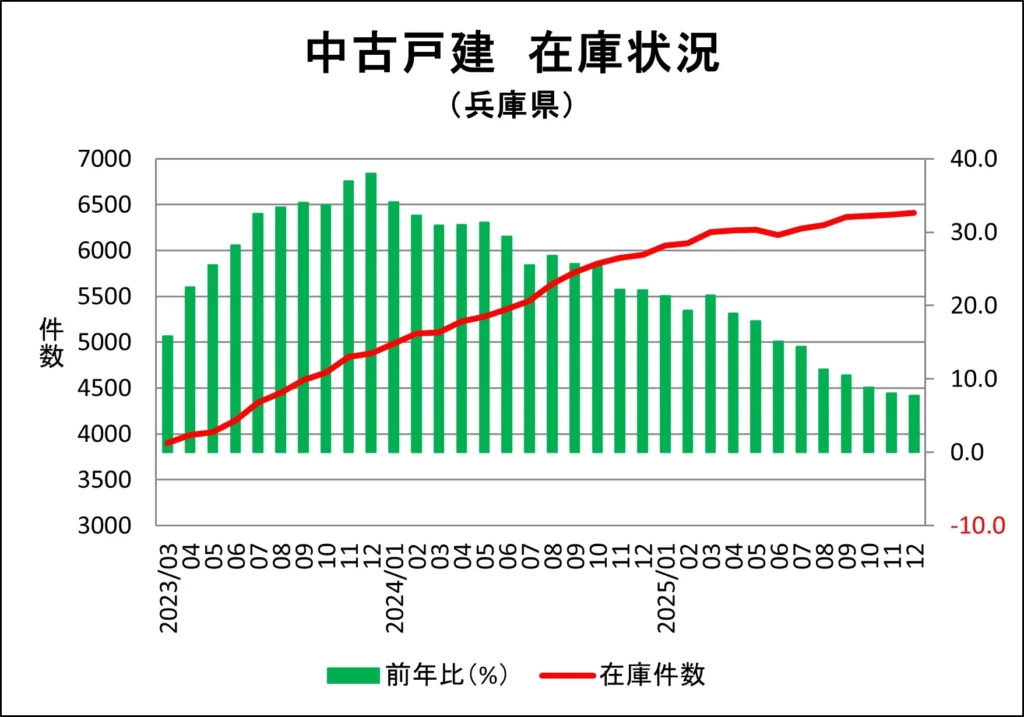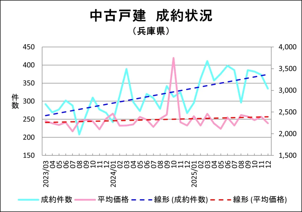 ここでは、東日本不動産流通機構(レインズ)から毎月1回発表される中古一戸建て売買市況データを基に、最新の兵庫県の中古一戸建て成約、販売中在庫、新規販売の各㎡単価推移をわかりやすく図解作成して、最新の市況についてご報告いたします。