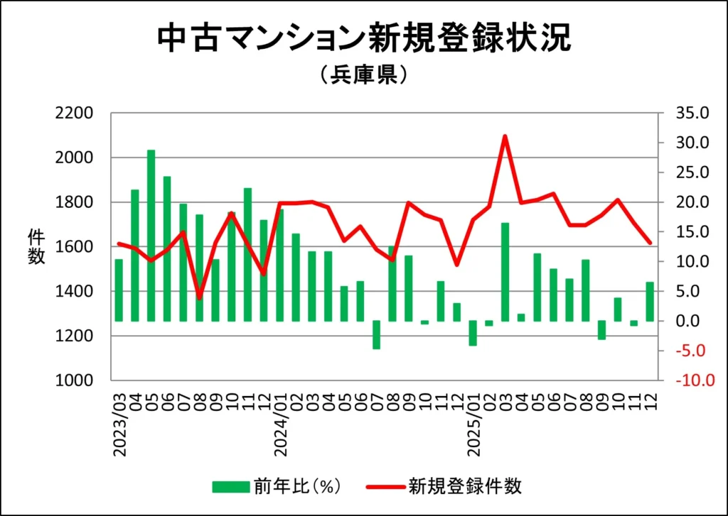 兵庫県の中古マンション市況についてレインズから発表されるデータを基にご説明いたします。