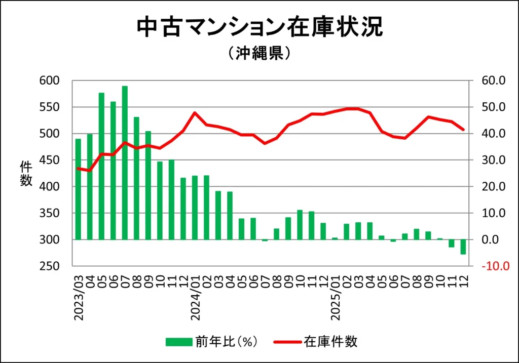 沖縄県のマンション販売中在庫推移