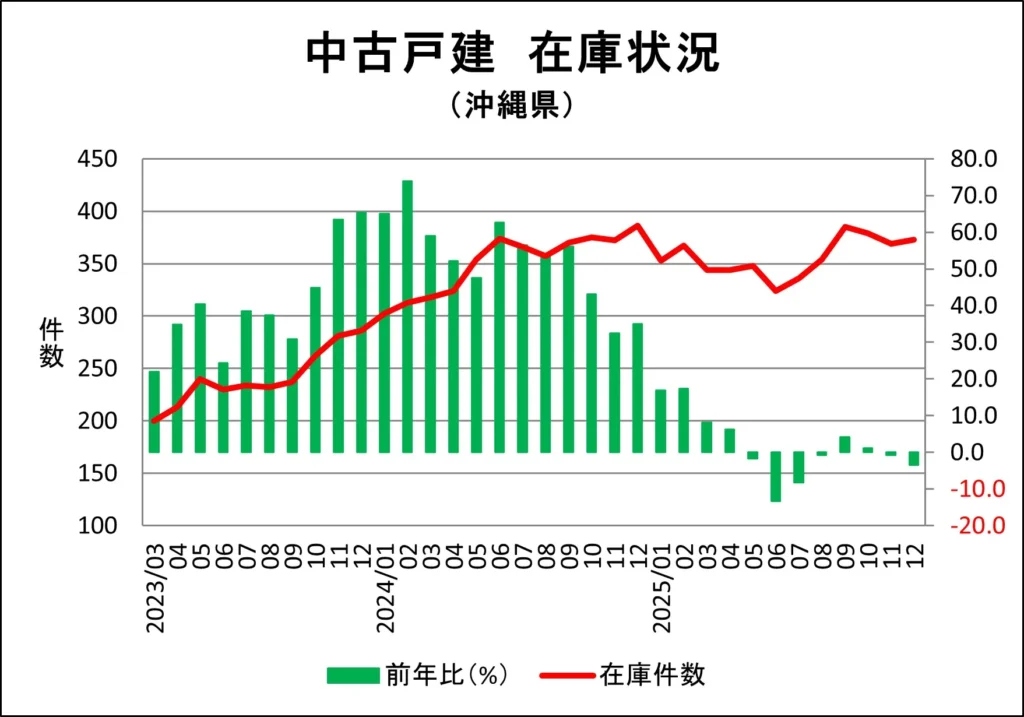 沖縄県の一戸建て販売中在庫推移