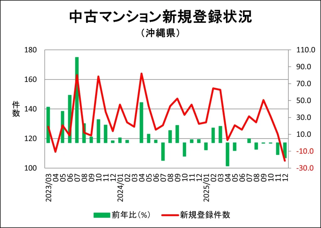 沖縄県の中古マンション市況について、レインズから発表されるデータを基にグラフ化しました。
