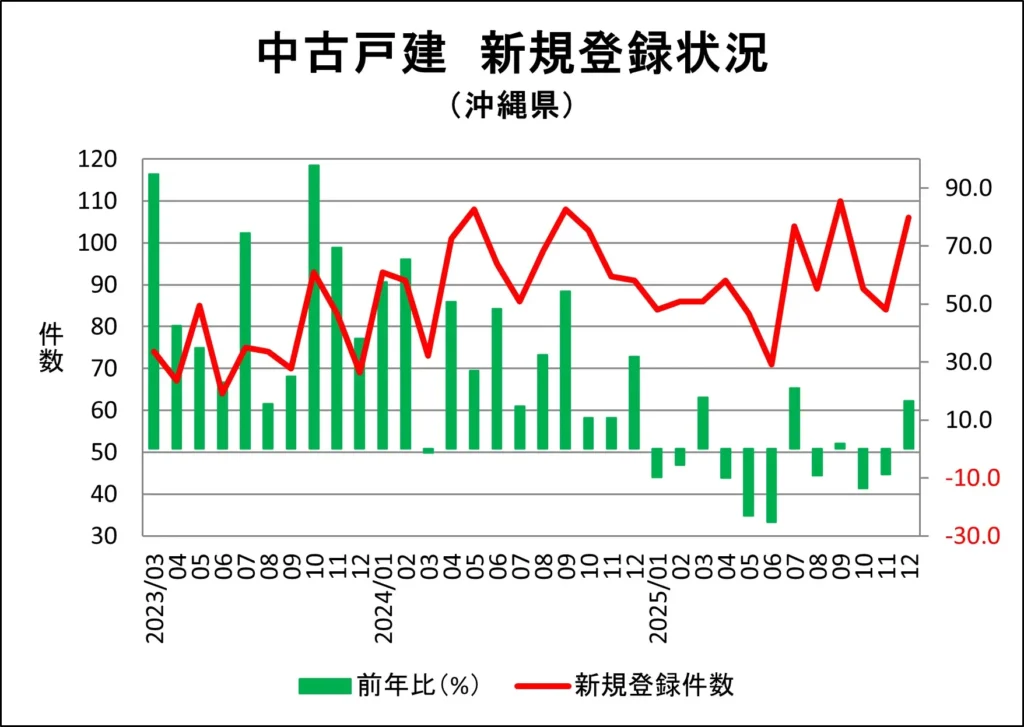 沖縄県の一戸建て新規売り出し件数推移