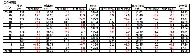 沖縄県のマンション価格の動きや市況動向・不動産価格や市況動向レポート