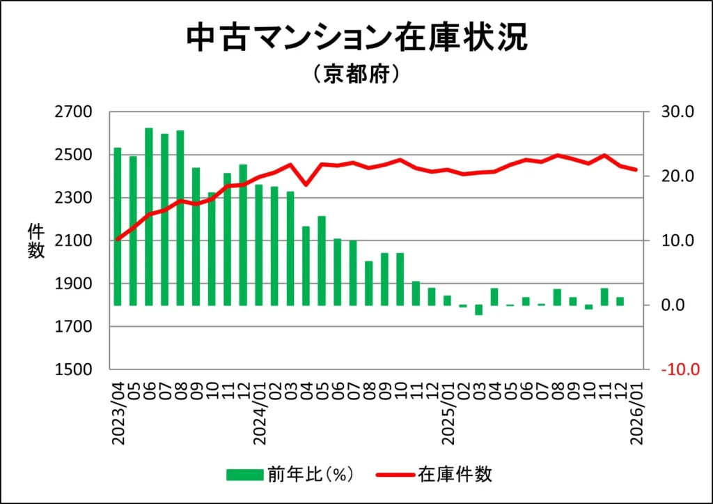 京都府のマンション販売中在庫推移