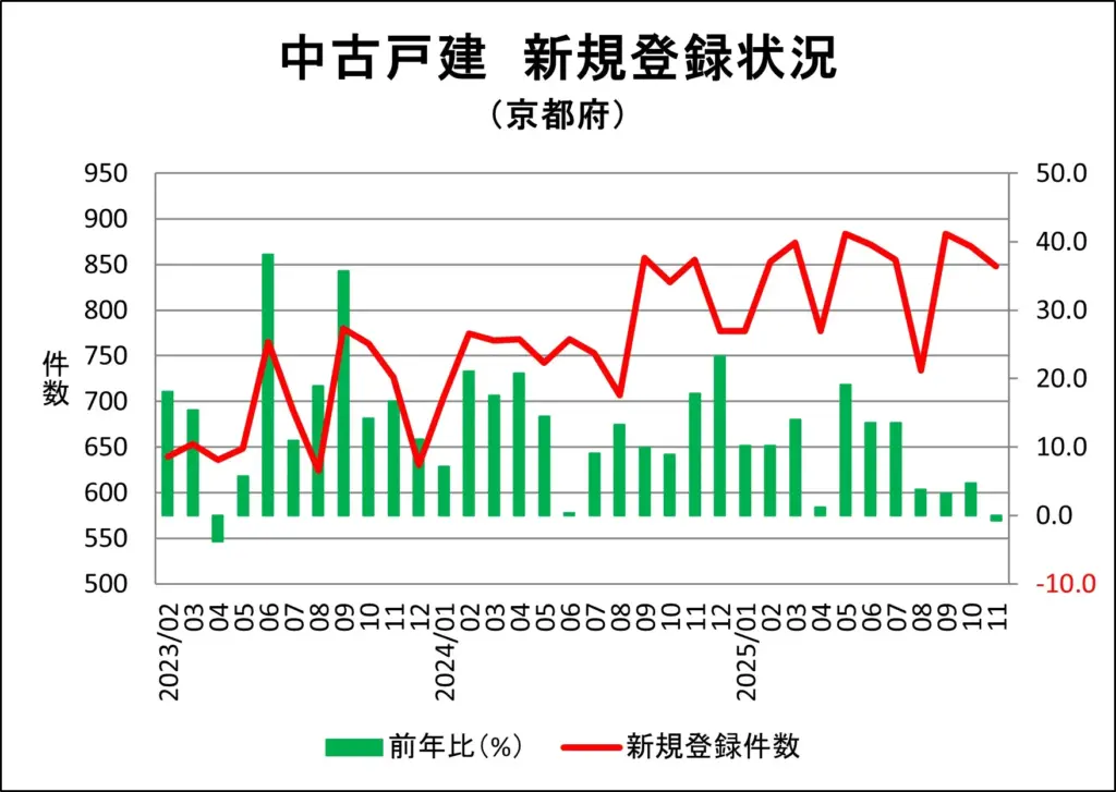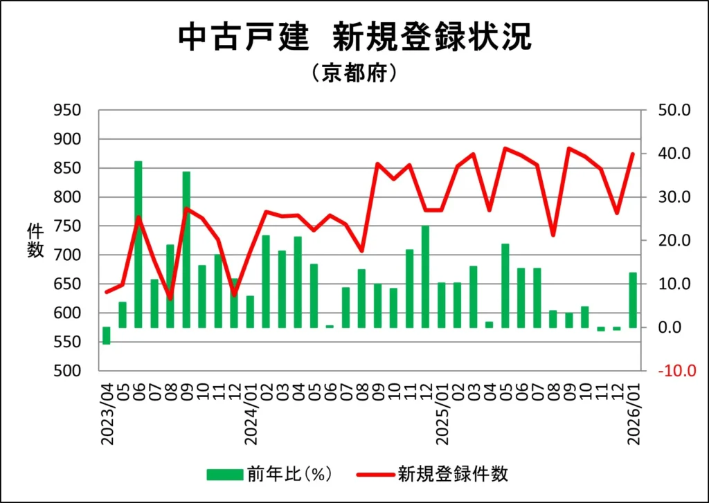 京都府の一戸建て新規売り出し件数推移