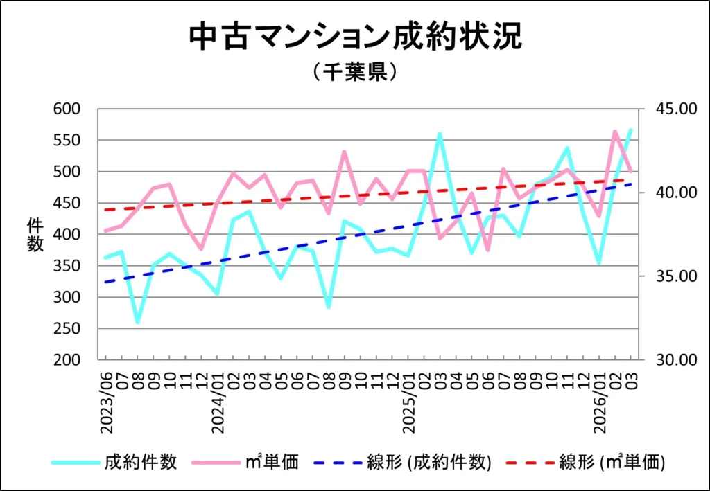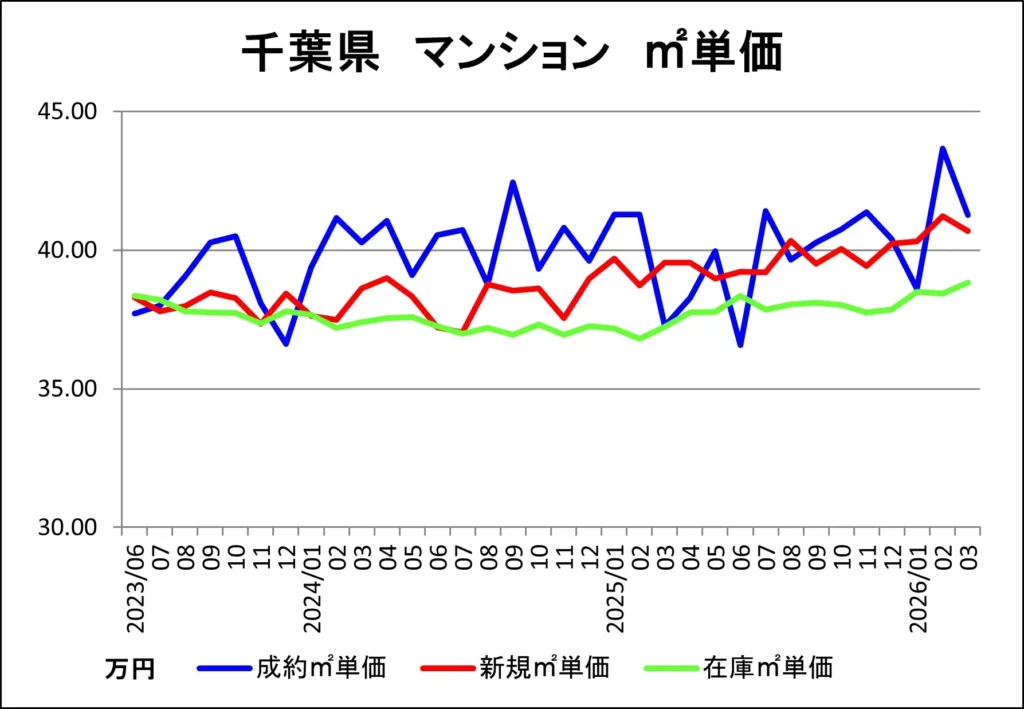 ここでは、東日本不動産流通機構(レインズ)から毎月1回発表されるマンション売買市況データを基に、千葉県内の中古マンション成約、販売中在庫、新規販売の各㎡単価推移をわかりやすく図解作成し、最新の市況についてご報告いたします。
