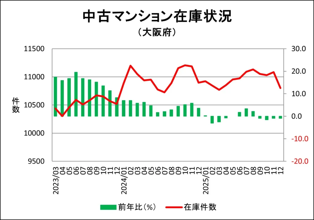 大阪市此花区のマンション販売中在庫推移