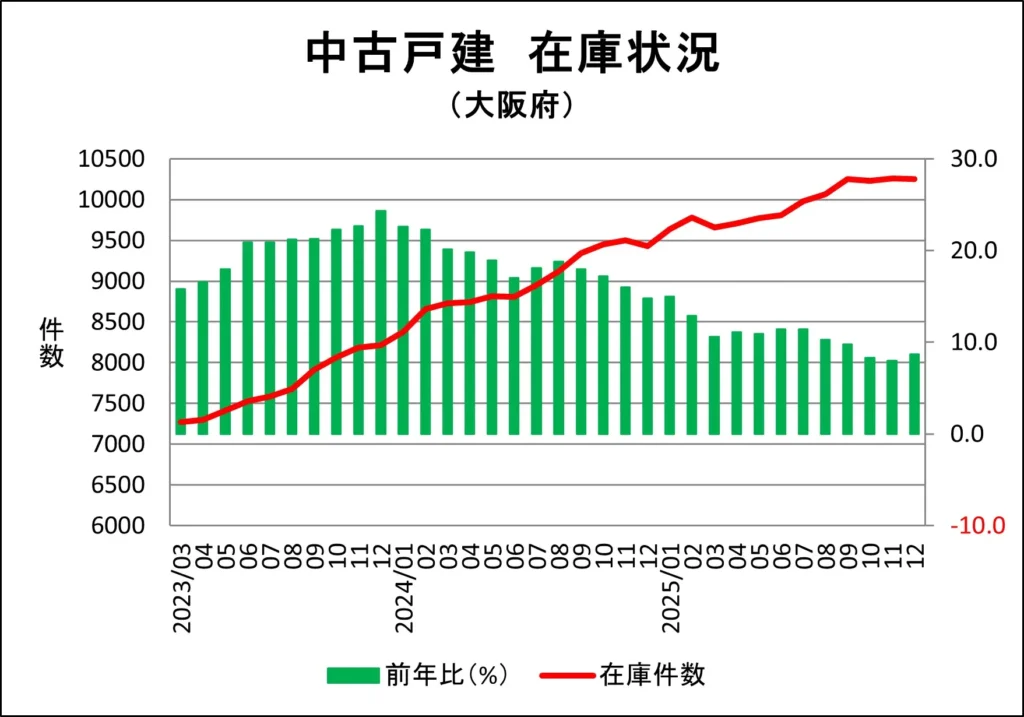 大阪市阿倍野区の一戸建て販売中在庫推移