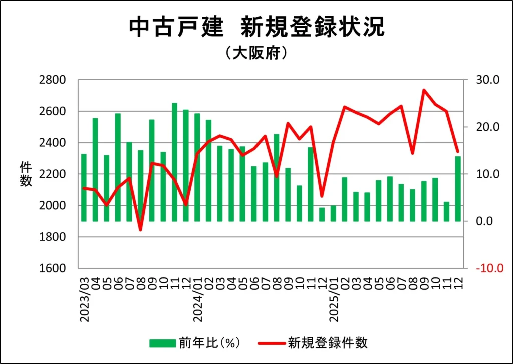 大阪市阿倍野区の一戸建て新規売り出し件数推移