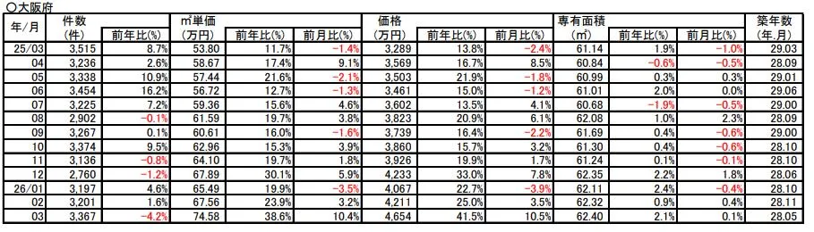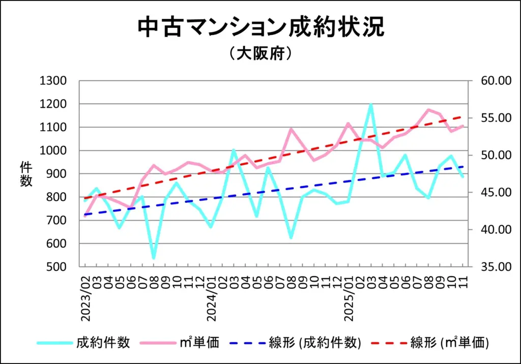 大阪府のマンション価格の動きや市況動向・不動産価格や市況動向レポート