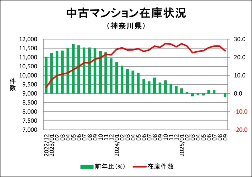 平塚市のマンション販売中在庫推移