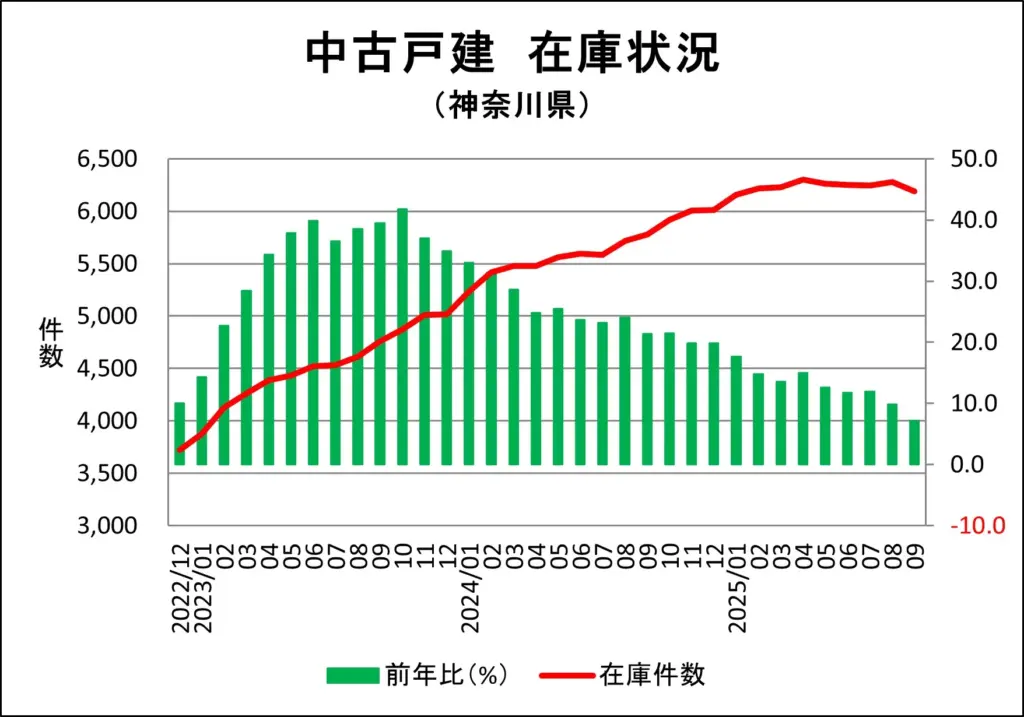 平塚市の一戸建て販売中在庫推移