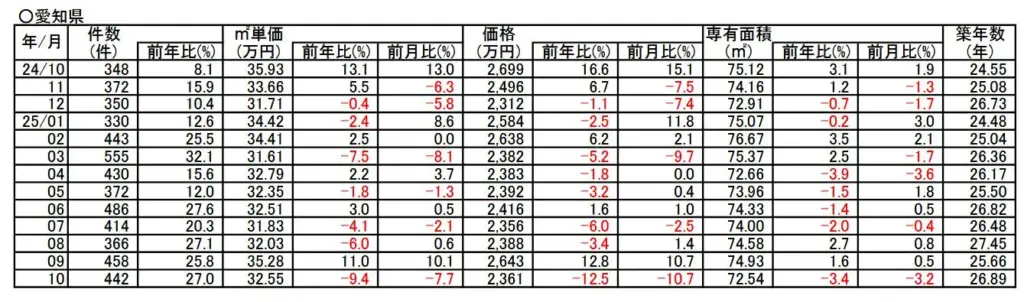 愛知県のマンション価格の動きや市況動向・不動産価格や市況動向レポート