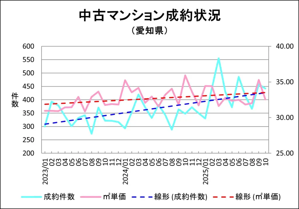 愛知県のマンション価格の動きや市況動向・不動産価格や市況動向レポート
