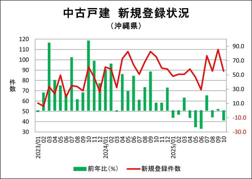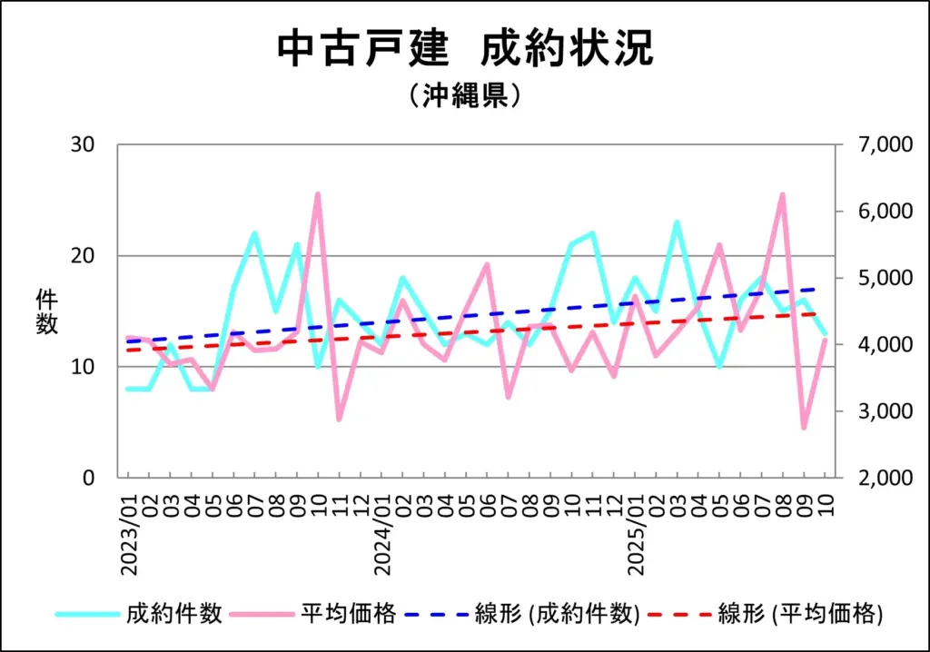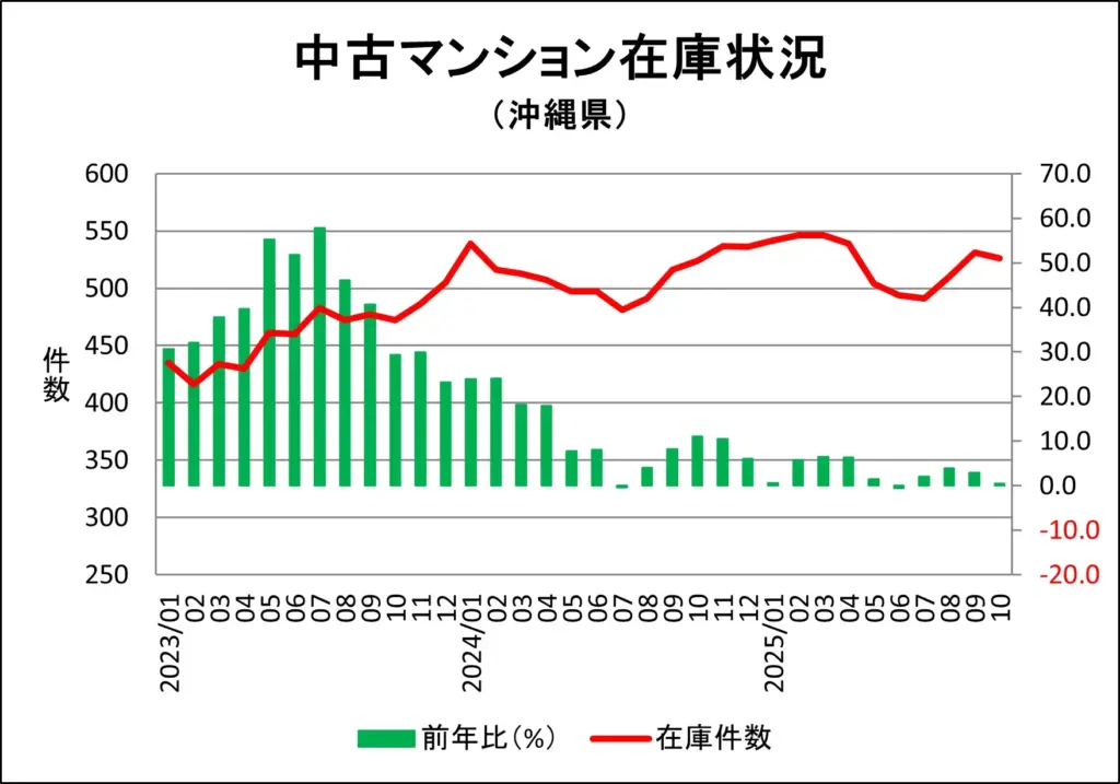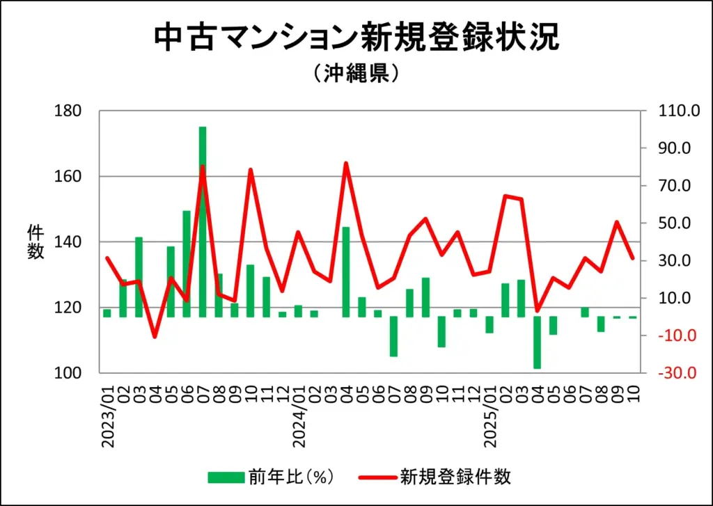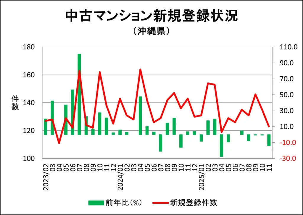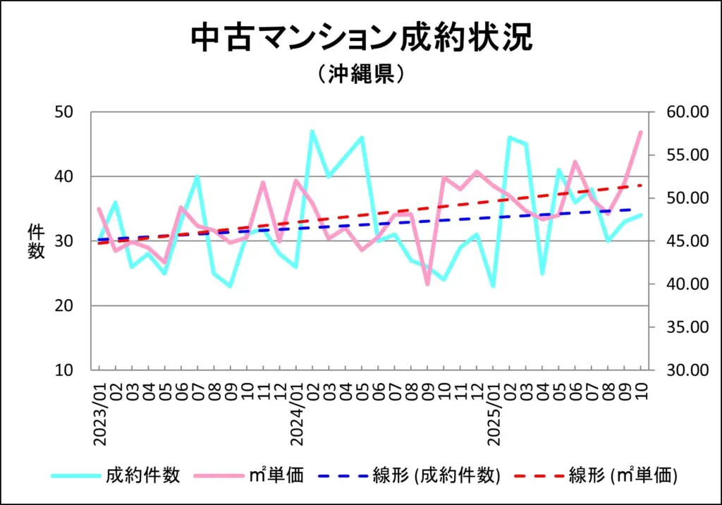 沖縄県の中古マンション市況について、レインズから発表されるデータを基にグラフ化しました。