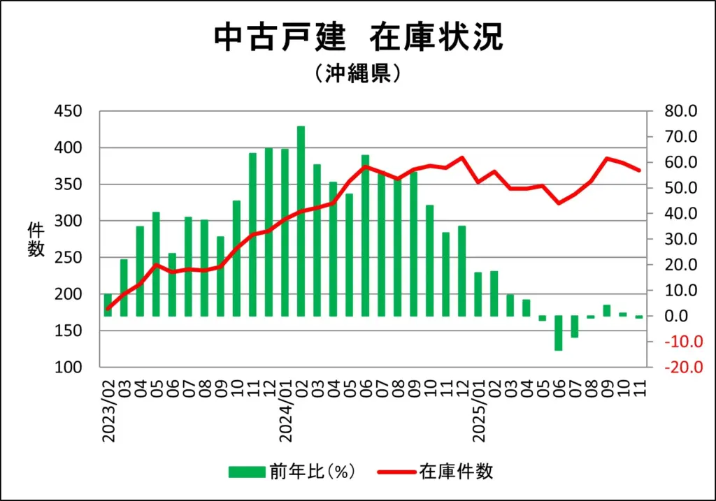 沖縄県の一戸建て販売中在庫推移