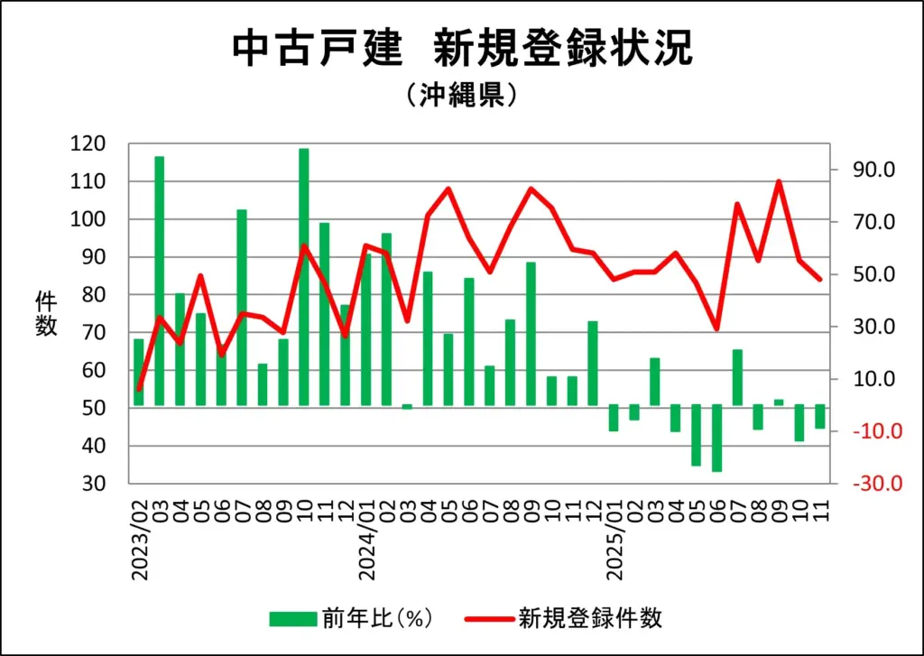 沖縄県の一戸建て新規売り出し件数推移
