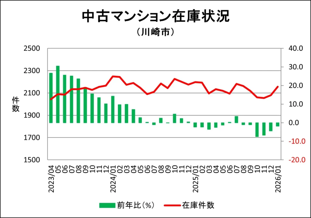 川崎市麻生区のマンション販売中在庫推移