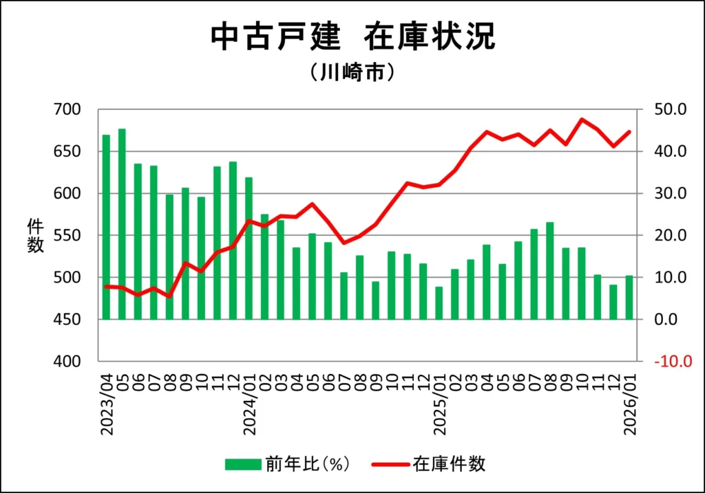 川崎市麻生区の一戸建て販売中在庫推移