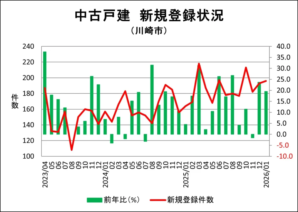 川崎市麻生区の一戸建て新規売り出し件数推移