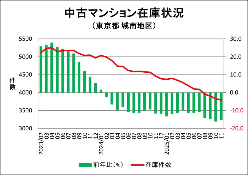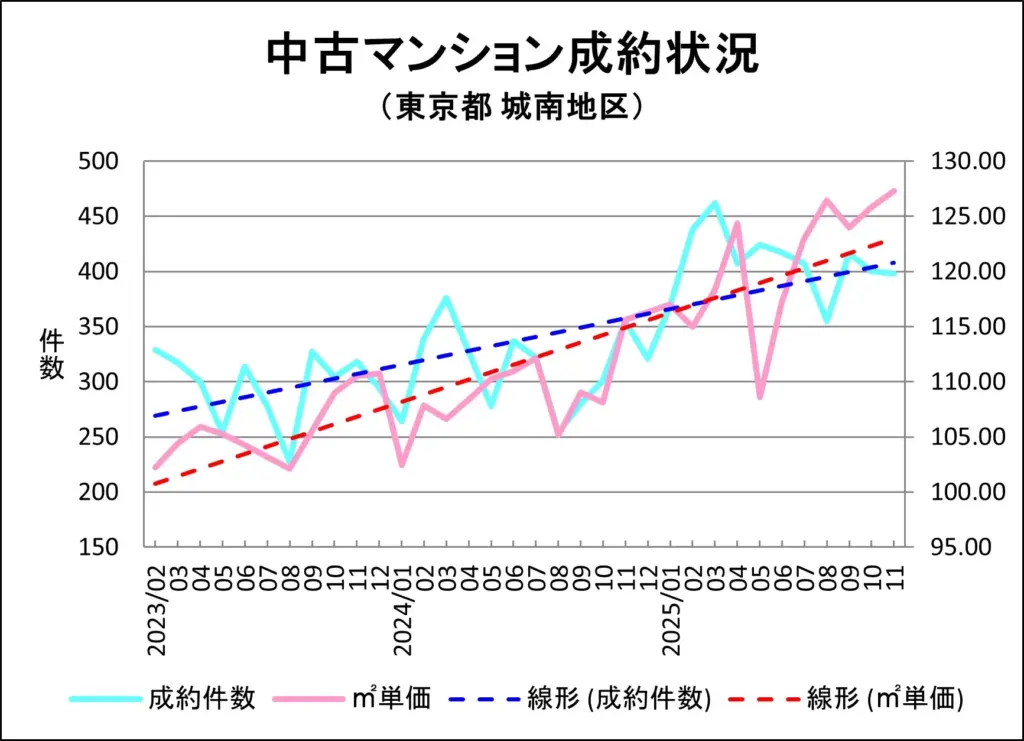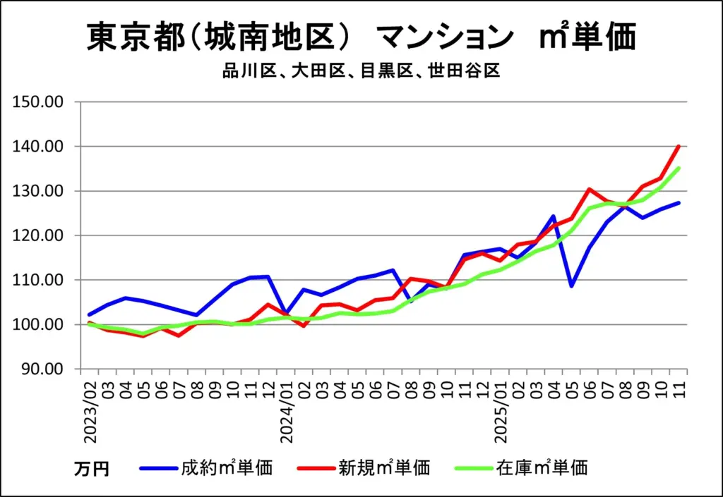 中古マンション 成約㎡単価は67ヶ月連続で上昇。在庫件数は4ヶ月連続で減少
