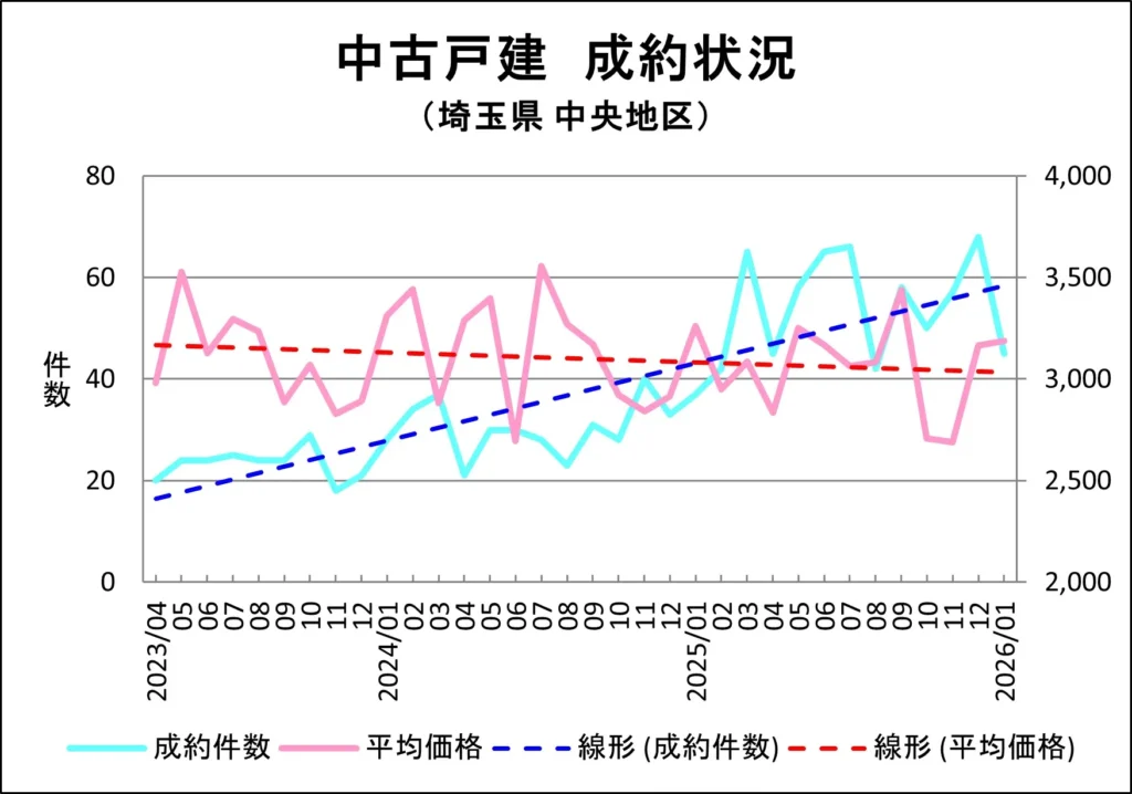 ここでは、東日本不動産流通機構(レインズ)から毎月1回発表される中古一戸建て売買市況データを基に、わかりやすく図解作成して、最新の市況についてご報告いたします。