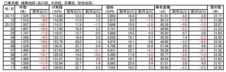 ・成約価格は、前年同月比プラス3.6%と24年11月から13ヶ月連続で上昇。前月比は2.3%下落